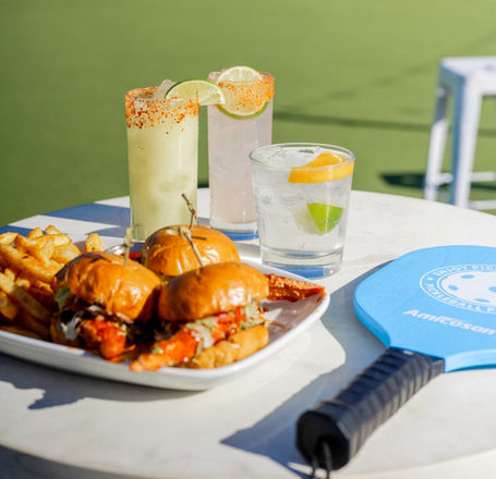 And don’t forget about the fun! Our outdoor lawn area is the perfect place to hang out with friends and family. Challenge someone to cornhole, get competitive with pickleball or ping pong, and watch your favorite game on our 20ft outdoor screen.
